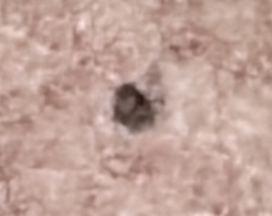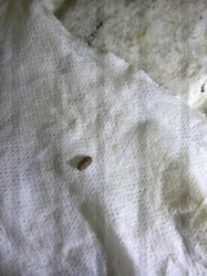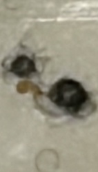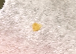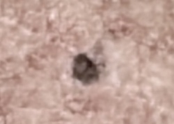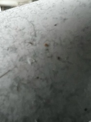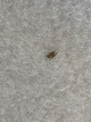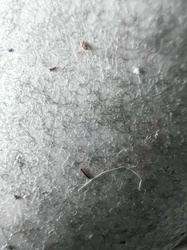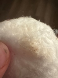 Inanimate debris (likely lint and carpet fibers)