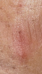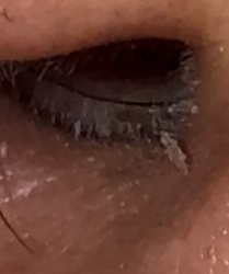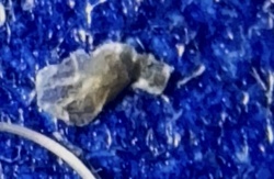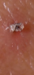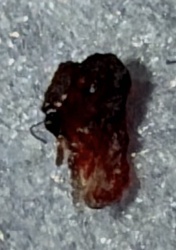 Unidentifiable Object (Likely debris or biological matter, possibly a scab or dried secretion)