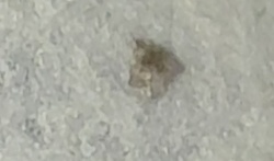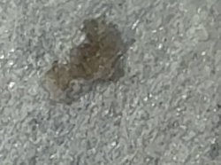 Not a bug/insect (Likely dried debris, semi-solid residue, or inorganic material)