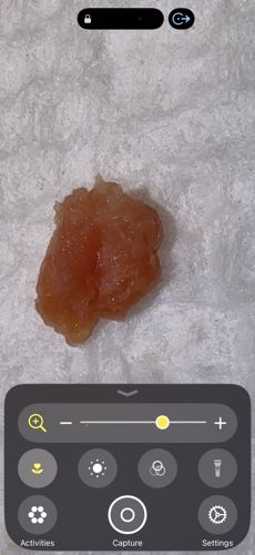 The image appears to show a piece of organic matter such as food debris, a droplet of fluid, or a non-living material rather than an insect. There are no identifiable anatomical features of a bug, such as legs, eyes, antennae, or a segmented body.