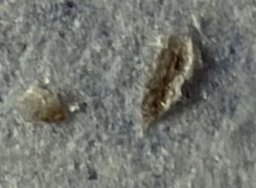 The larva constructs a flattened, pumpkin-seed-shaped case out of silk and debris (sand, dust, fibers) which it drags around as protection. It can poke its head out from either end to move or feed.