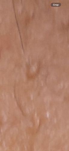 The provided image is too blurry and lacks distinct features to identify any insect or bug. The image appears to show a patch of skin with a faint mark or hair, but no identifiable arthropod is visible.