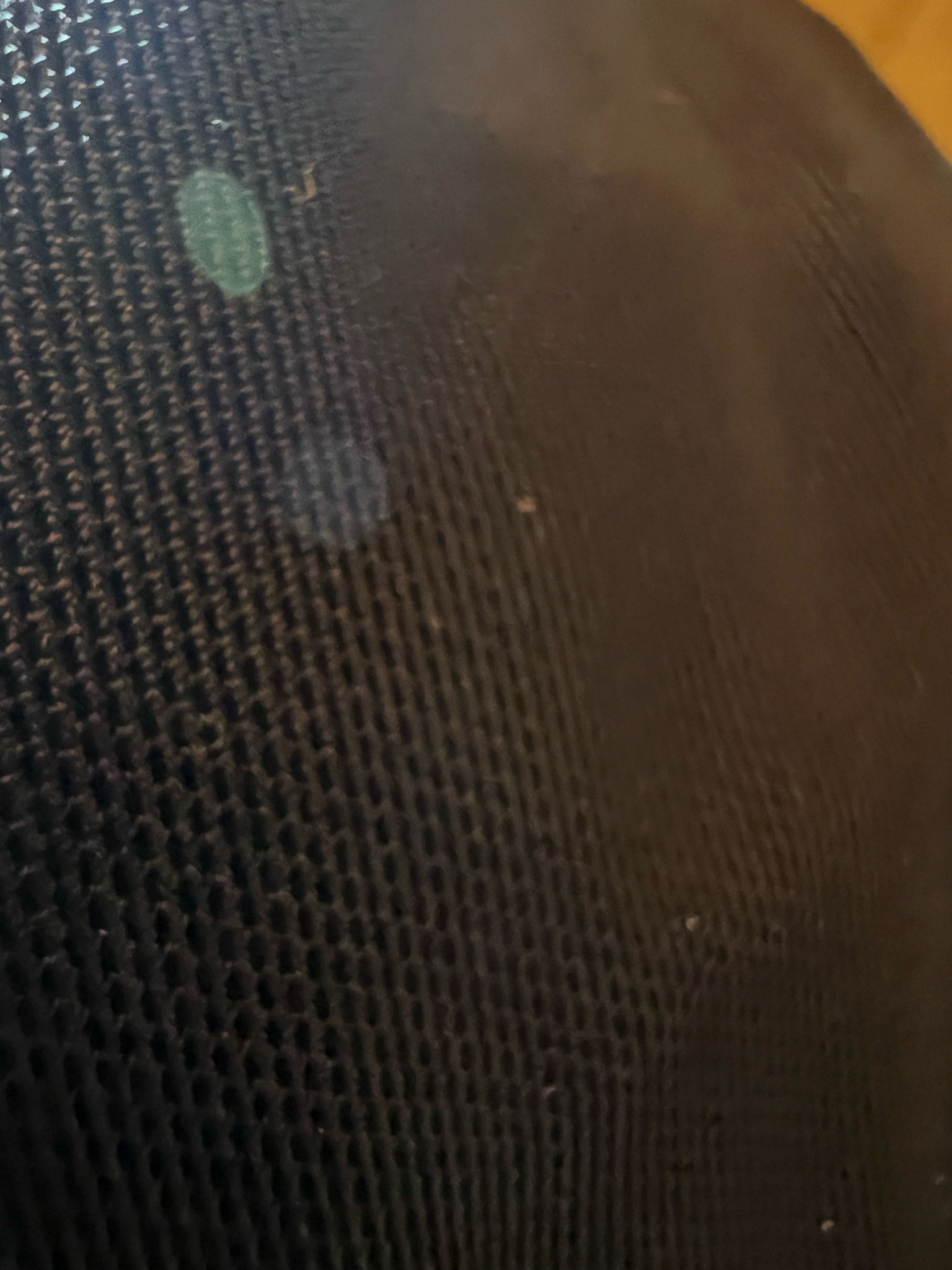 Stationary; caught in the weave of a mesh fabric. No signs of life or biological movement are visible.