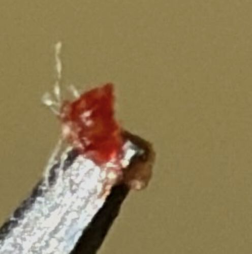 Unidentifiable Object (Likely debris or biological matter, possibly a scab or dried secretion)