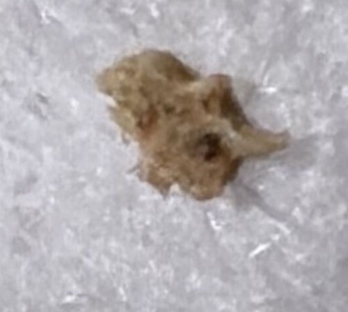 Size: Typically 1/4 to 1/2 inch (6-12 mm) in length, though the debris pile makes them appear larger and irregular.