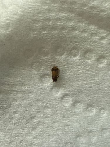 Larvae feed on natural animal fibers and products including wool, silk, fur, feathers, leather, and dead insects; they are scavengers of keratin and chitin.