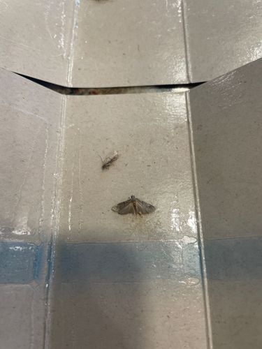 Adults are nocturnal and often seen flying in a zig-zag pattern. Larvae spin silken webs throughout the food source they are consuming.