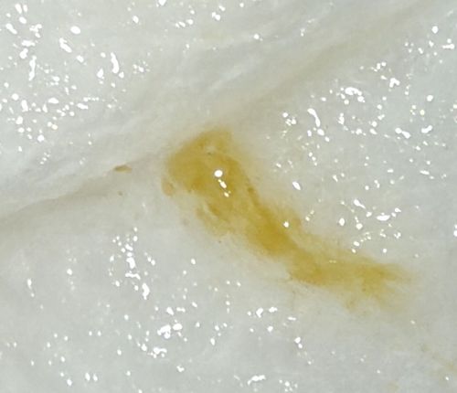 This image does not appear to show an insect or bug. The translucent, yellowish, amorphous, and wet appearance strongly suggests it is a biological secretion such as mucus (phlegm) from the respiratory tract, possibly expectorated onto a tissue. It lacks the defining structures of an insect like segmentation, legs, or distinct organs.