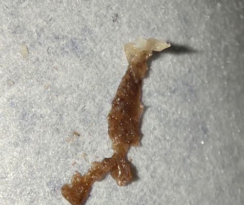 N/A. This is a static piece of organic material, likely shed from a human body.