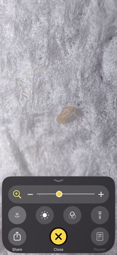 Microscopic mold, mildew, fungi, and organic debris like starchy glues or grains.