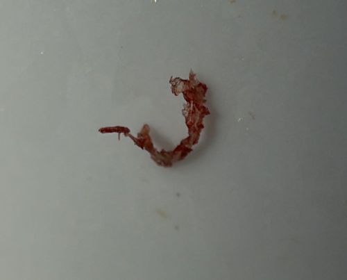 Stationary; appears to be non-living debris, dried skin, or a fragment of an organism rather than a living specimen.