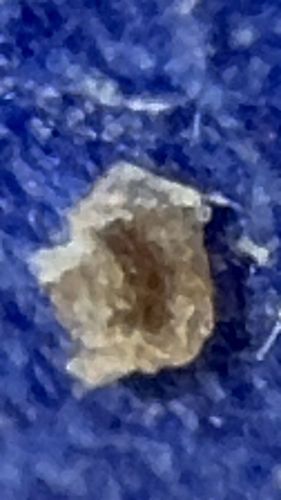Size: Larvae are generally 2-5 mm in length; the debris or casing shown is extremely small, likely in the lower end of that range.