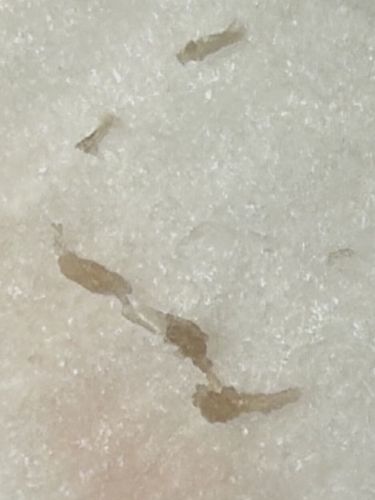 These insects are wingless and run relatively quickly but often appear static until disturbed. They do not bite humans. Their population can explode rapidly in humid conditions. They are often seen on white surfaces like flour or sugar containers.