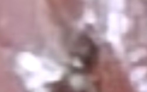 The provided image is too blurry to distinguish specific features, body parts, or markings necessary for identification. It shows indistinct brown and white splotches that could be an insect, but could also be a rock, bark, or other debris.