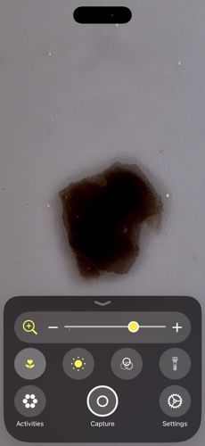 This image shows a lesion with irregular borders and uneven color. This can be a sign of a serious skin condition, such as melanoma. You should consult a healthcare professional or dermatologist immediately for an in-person evaluation. Early detection is critical for effective treatment.