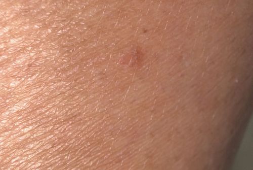 The image provided depicts a patch of human skin with a small raised bump, lesion, or spot. There is no visible insect, bug, or arthropod present in the photograph to identify.