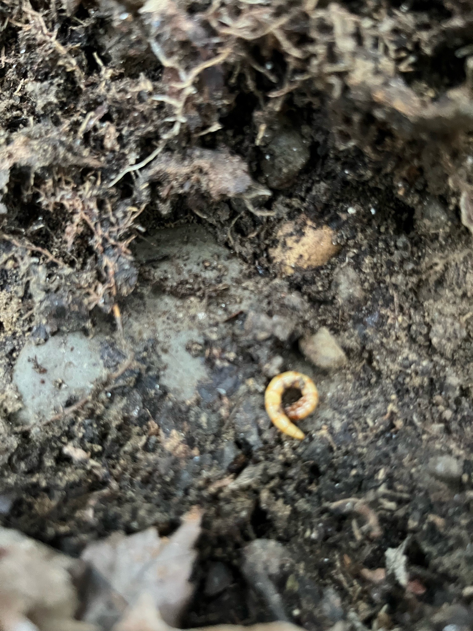 The larval stage of the click beetle, which can spend 2 to 6 years in the soil before pupating. They are highly sensitive to moisture and will move deeper into the soil during dry periods.
