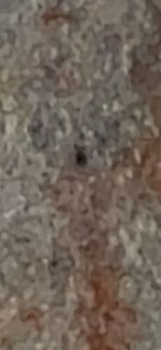 The image provided is too blurry and lacks sufficient detail to determine if there is an insect present. The dark spot could be a spec of dirt, a small insect, or simply a dark area in the granite/patterned surface.