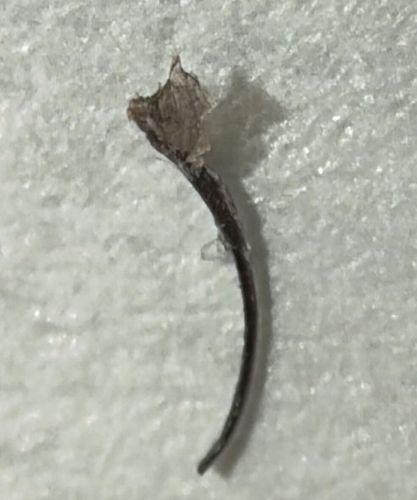Size: Varies by species; German cockroaches are approx. 1.1-1.6 cm, while American cockroaches can reach 4 cm or more. This leg fragment likely belonged to a medium-sized specimen.