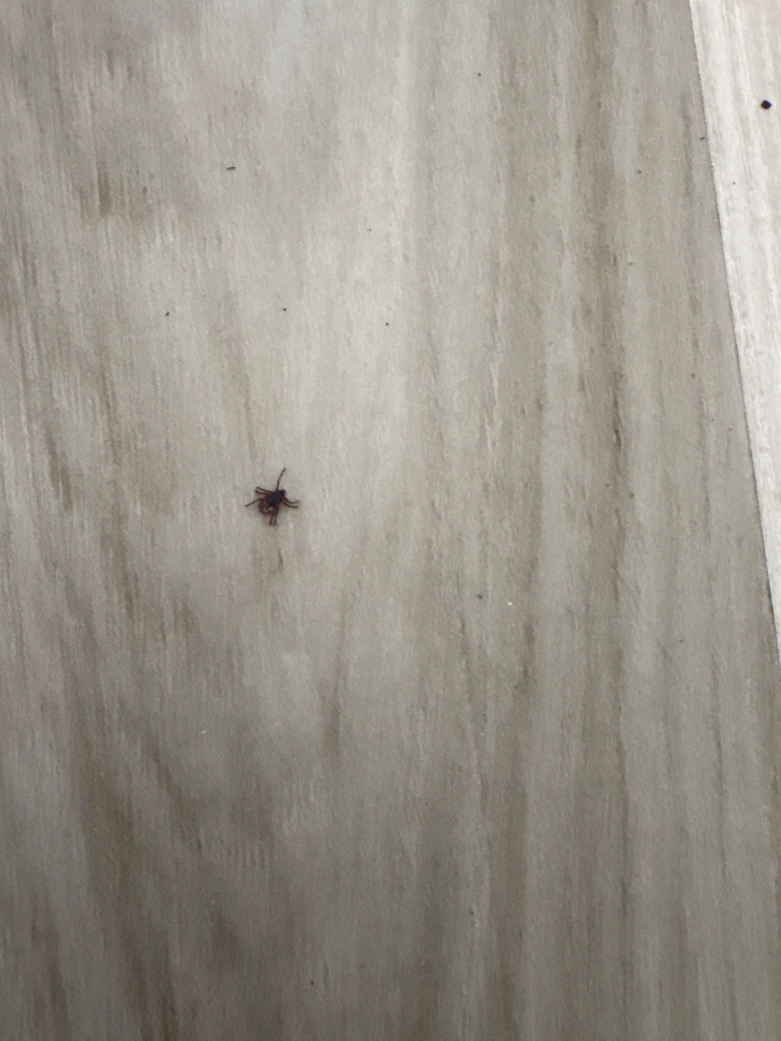 This tick is a 'questing' arachnid that waits on the tips of vegetation to latch onto a passing host. They have a four-stage life cycle: egg, larva, nymph, and adult.
