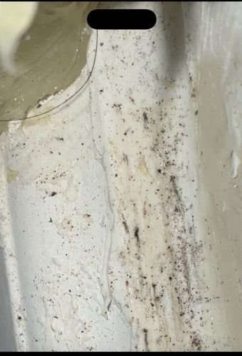The image appears to show accumulation of speck-like debris or dirt (which could potentially be insect frass/droppings such as from cockroaches or bed bugs, or simply mold/dust) rather than a live insect specimen.