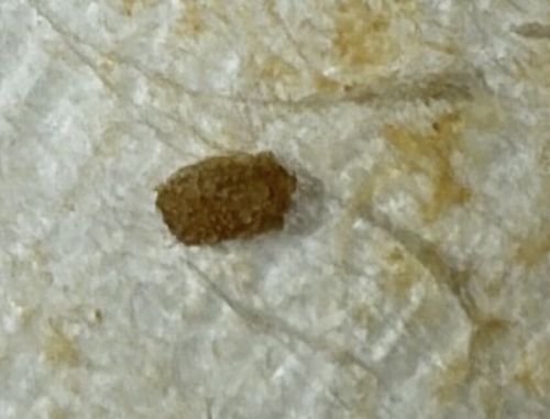 The larva constructs a flattened, pumpkin-seed-shaped protective case out of silk and debris (sand, soil, frass, paint fragments). It drags this case around as it moves. Before pupating, they often climb walls or hang from ceilings.