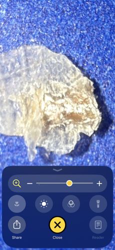The image does not show a recognizable insect or bug; it appears to be a piece of skin, dead tissue, or a cluster of debris/lint.