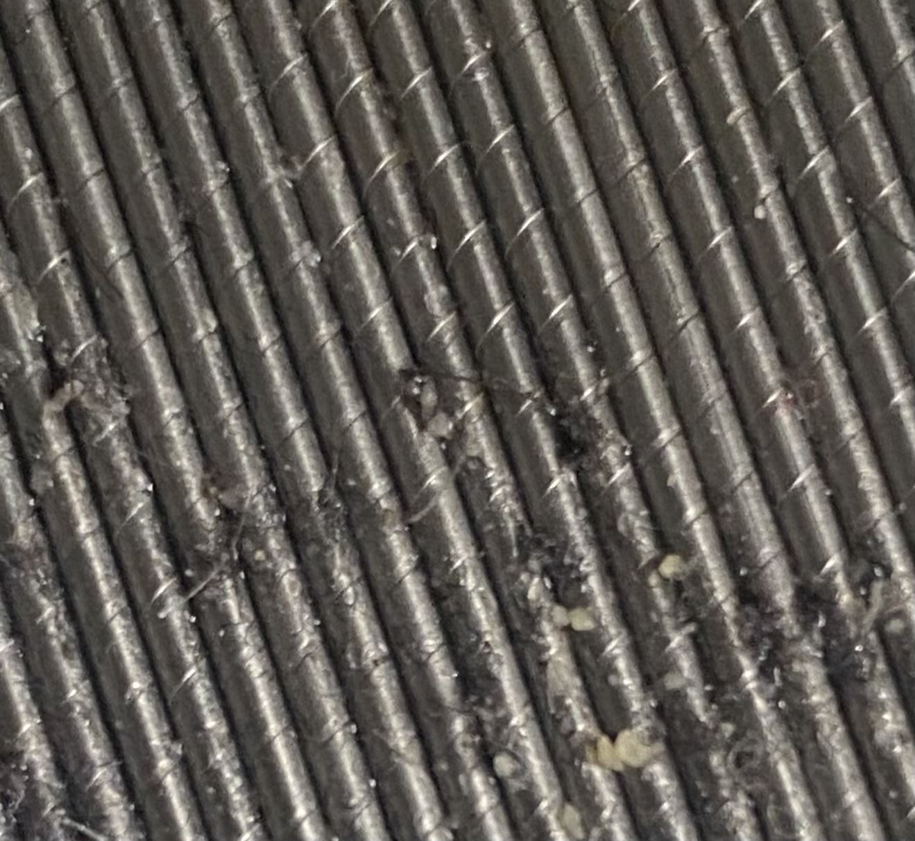 Size: 0.3–0.5 mm (nearly microscopic, appearing as white dust or lint to the naked eye)
