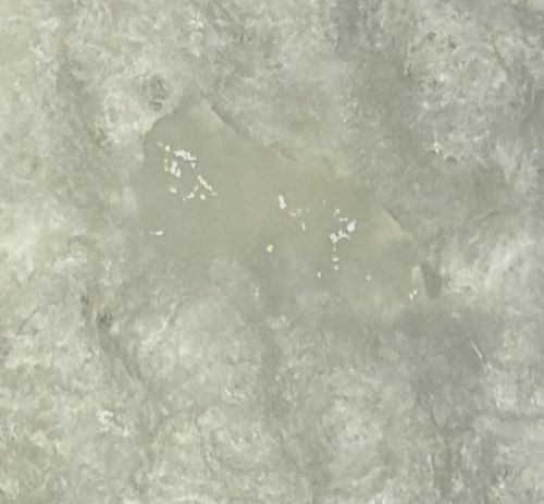 The image provided does not show a clearly distinguishable insect or bug. The visible object appears to be a small, semi-transparent blob or possibly a flake of material (like skin or debris) against a fibrous background. Without distinct morphological features like legs, antennae, segmentation, or a head, a positive identification is not possible.