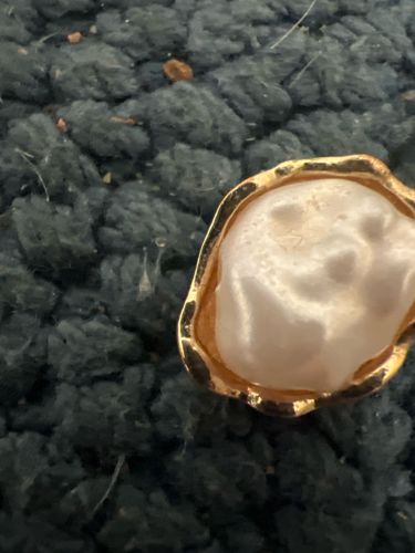 Stationary; used for aesthetic purposes. The object appearing in the image appears to be a baroque pearl or a decorative bead set in a gold-toned metallic mounting.