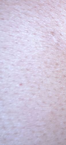The image provided shows human skin with visible pores and slight texture. There is no visible bug or insect in the photograph.