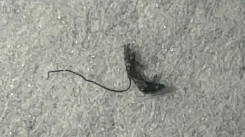 The larva uses its long, snorkel-like tail to reach the surface for air while its body remains submerged in polluted muck. When fully grown, they crawl out of the semi-liquid environment to find a drier place to pupate, which is likely what is happening in this photo.
