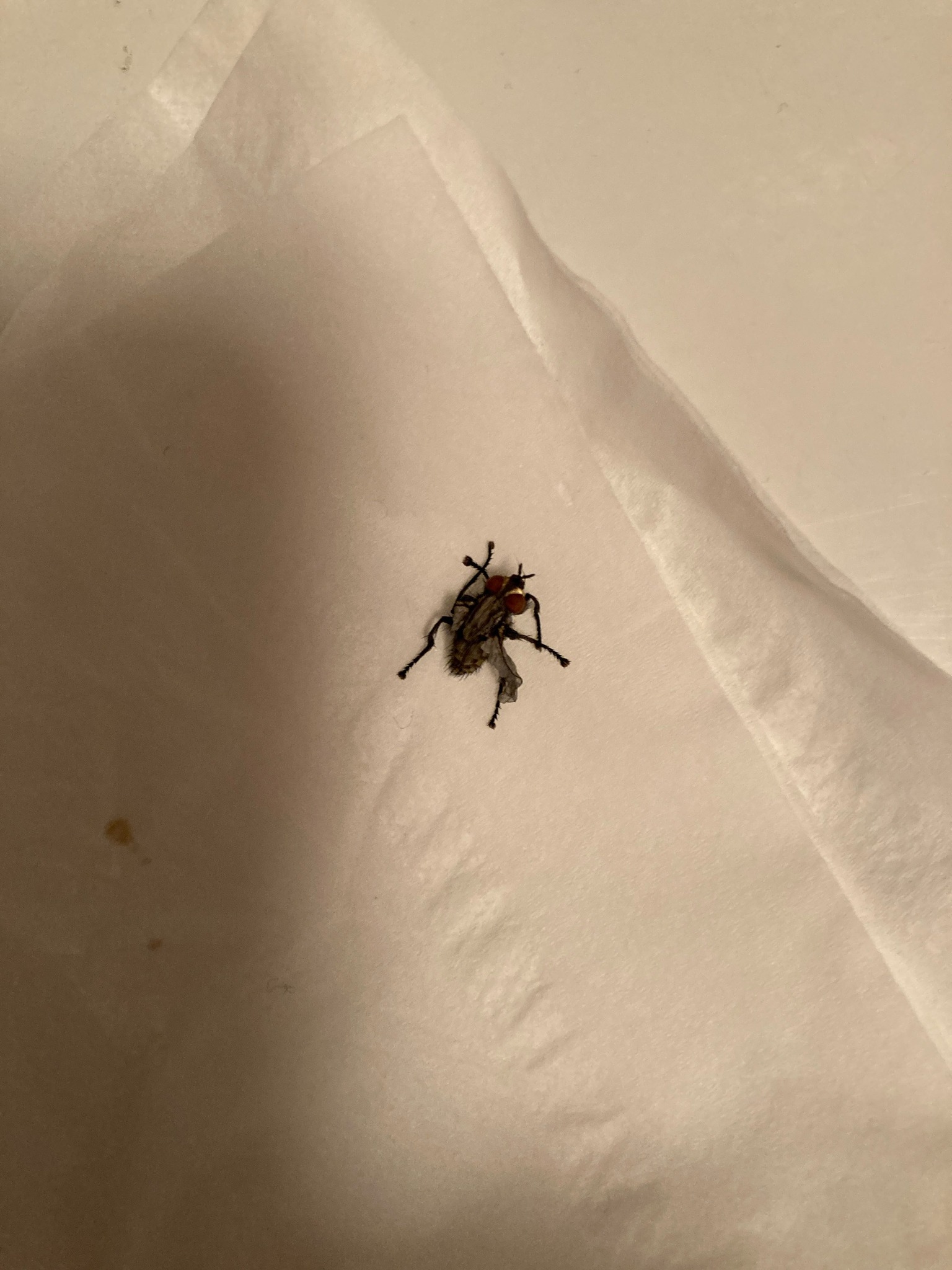 Unlike many flies that lay eggs, flesh flies are ovoviviparous, meaning the eggs hatch inside the female and she deposits live larvae directly onto a food source. They are fast fliers and often identified by the three dark longitudinal stripes on their thorax.