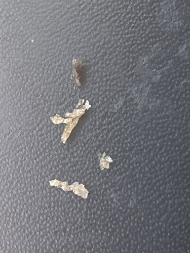 Typically found on surfaces like car upholstery, clothing, or bedding.