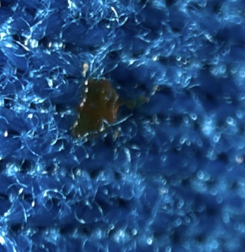 Found on surfaces such as fabric, carpet, or clothing.