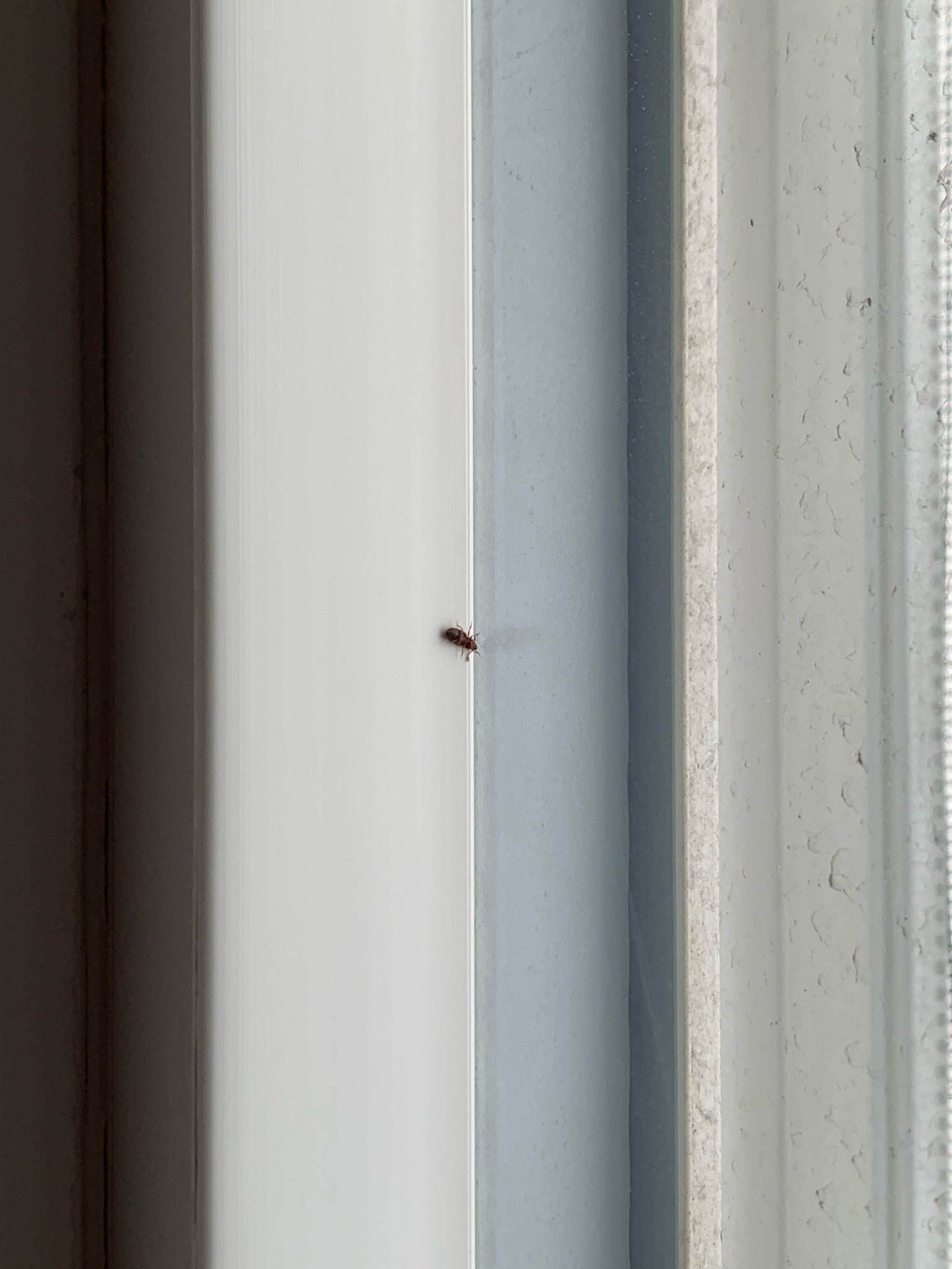 Larvae do most of the feeding and can bore into soft wood, books, or insulation to pupate. Adults are often seen near windows as they try to move outdoors.