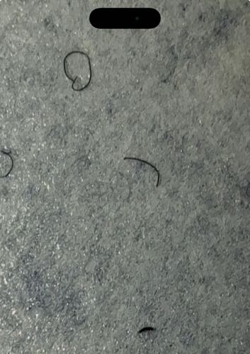 These objects are inanimate and do not exhibit behavior. The curled shape is typical of pubic hair or short body hair that has naturally shed.