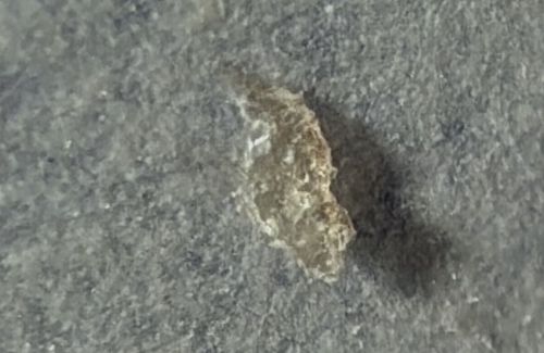 The larva constructs a flat, pumpkin-seed-shaped protective case out of silk and surrounding debris (sand, dust, lint). It carries this case with it as it moves. The larva can extend its head and legs from either end of the case to crawl.