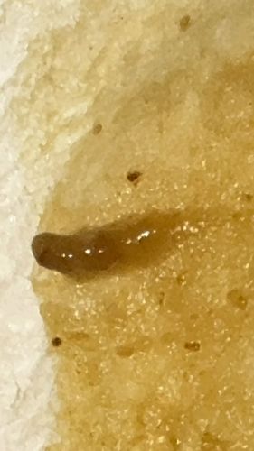 Larvae hatch from eggs and burrow immediately into the food source. They go through three larval stages (instars) over the course of about 4-5 days before finding a dry spot to pupate. They are negatively phototactic (move away from light) to stay buried in their moist food source.
