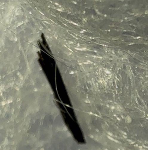 Found on fibrous material (possibly a dryer sheet, web, or dust bunny)