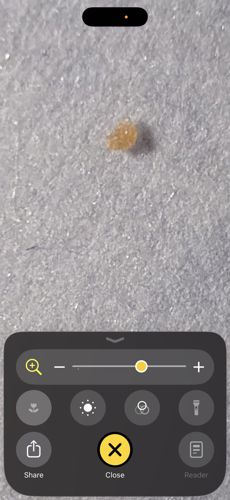 Size: 0.5 mm to 1.0 mm (barely visible to the naked eye, appearing as moving specks)