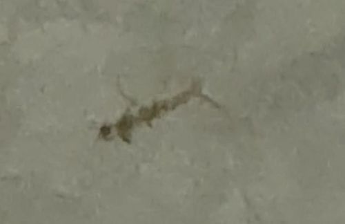 Springtails are famous for their furcula, a tail-like appendage folded under their abdomen that allows them to 'spring' or jump into the air when threatened. They do not have wings. They often gather in large numbers in damp areas.