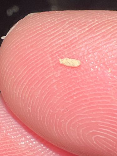Size: Segments are typically 10–20 mm long and 5–10 mm wide, appearing as small, white, grain-like objects.