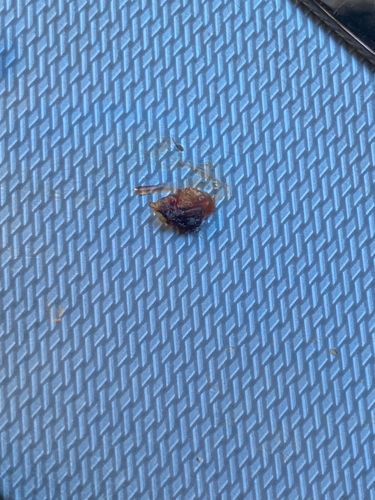 Size: Adults are 4 to 5 mm in length; this specimen is a partial remains or crushed individual.