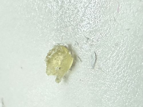None observed; the object appears to be a translucent, yellowish flake or particle rather than a living insect.
