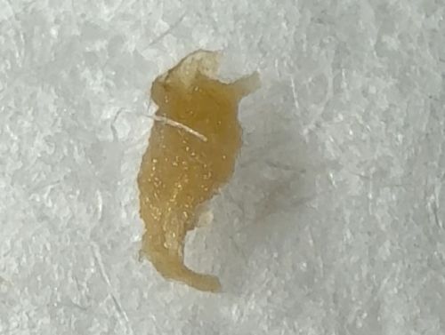 Unidentifiable organic debris (likely sebum plug, dried skin, or booger)