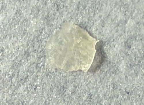This item is an inanimate object, appearing to be a flake of dead skin (desquamated epidermis), a dried scab, or possibly a small crumb of dried residue like glue or food. It does not exhibit behavior.