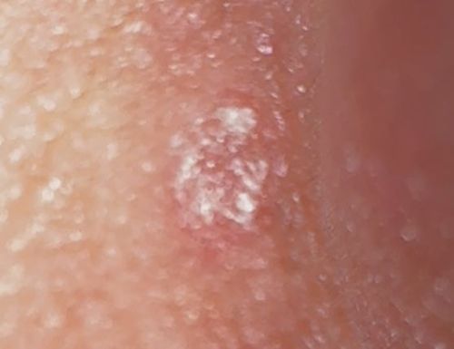 This image appears to show a close-up of human skin texture, possibly a small wart, callus, or minor skin irritation, rather than an insect or bug.
