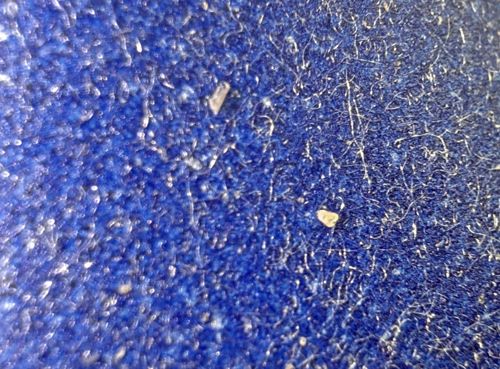 Found on a blue textured surface (likely fabric or plastic) in the image provided.