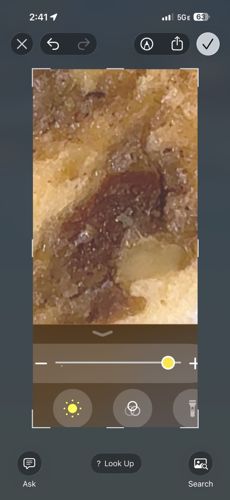 The image appears to show organic material, likely food, which is the primary habitat for pantry pests like flour moths or bean weevils.